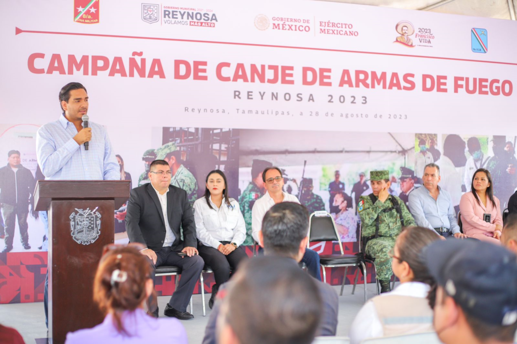 El Gobierno de Reynosa que encabeza el Presidente Municipal Carlos Peña Ortiz, junto a el ejército mexicano hace el exhorto a la población para sumarse a la Campaña de Canje de Armas de Fuego Reynosa 2023, teniendo como sede oficial la plaza principal Miguel Hidalgo de la Zona Centro.